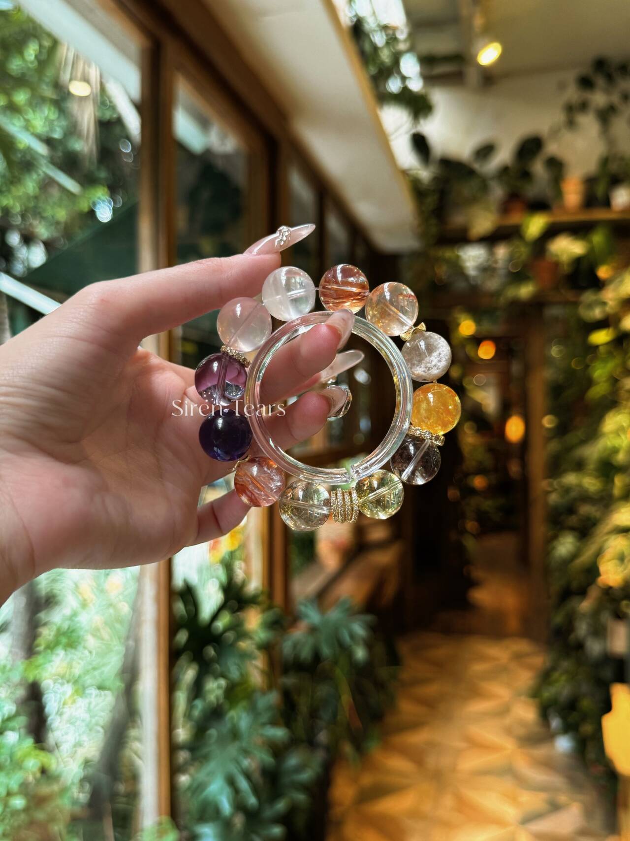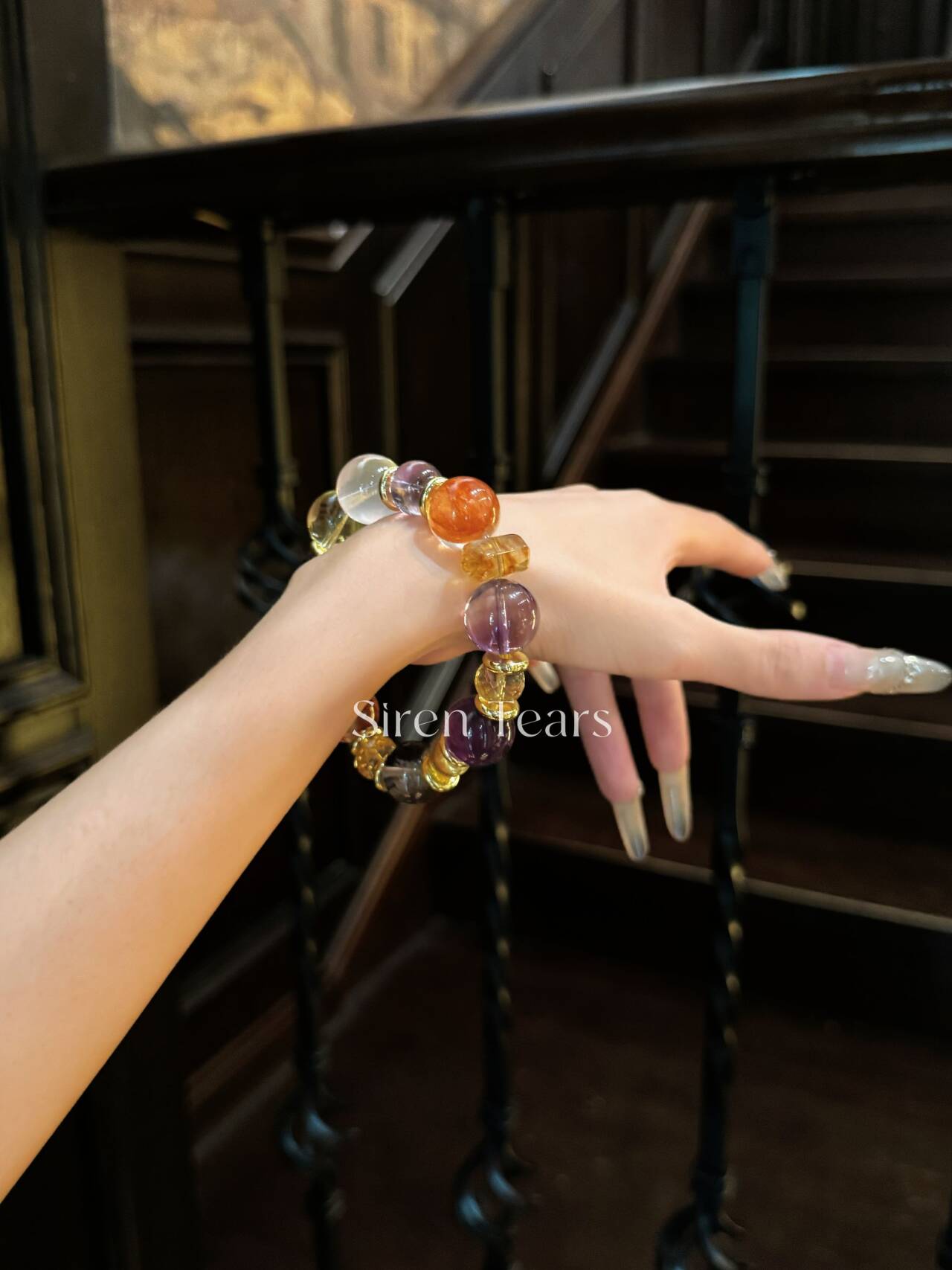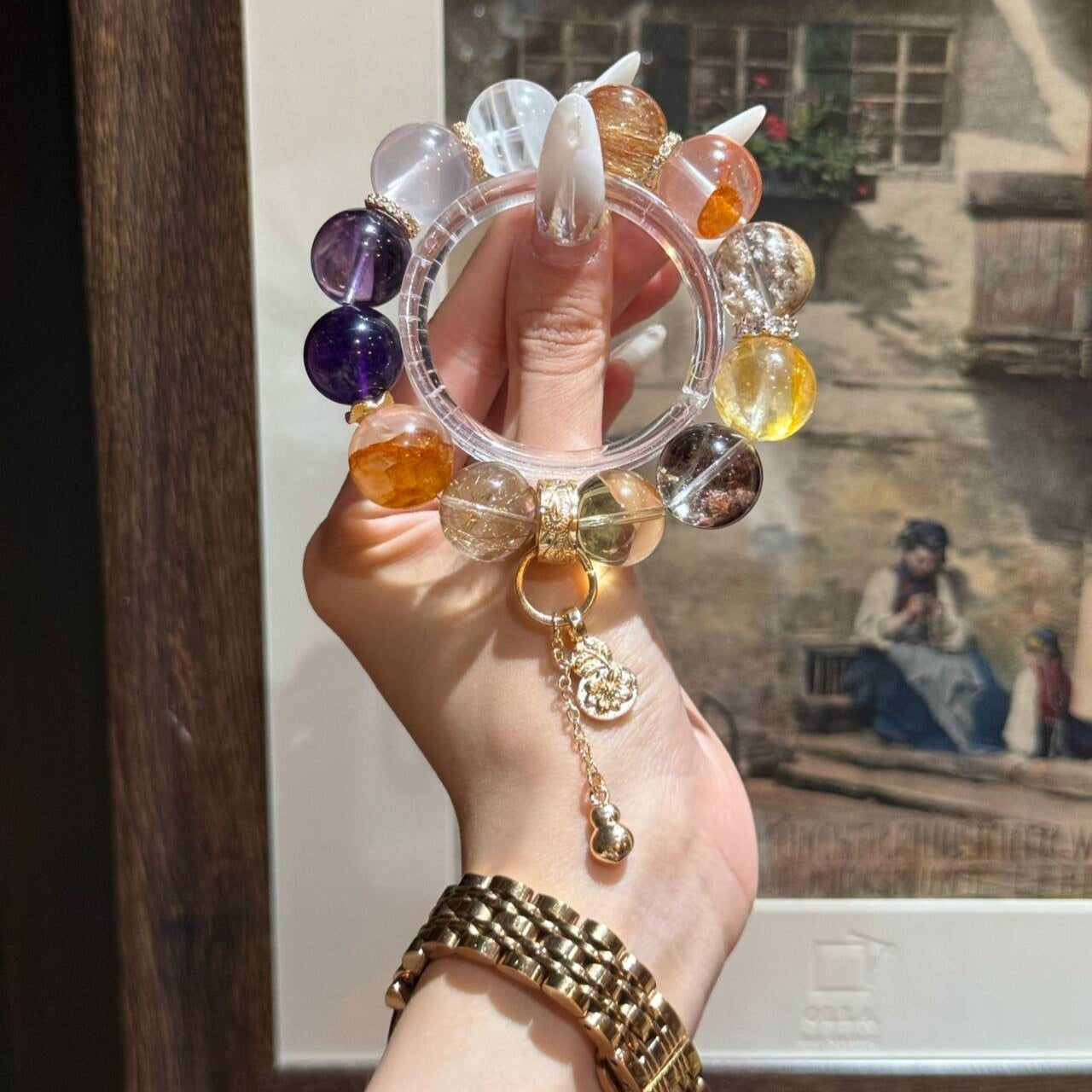 This bracelet skillfully brings together the depth of red phantom quartz, the softness of red rabbit hair crystal, the mystery of amethyst, the brightness of citrine, and the gentleness of rose quartz. Gemstones of various colors set each other off, as if painting a colorful natural picture on the wrist.