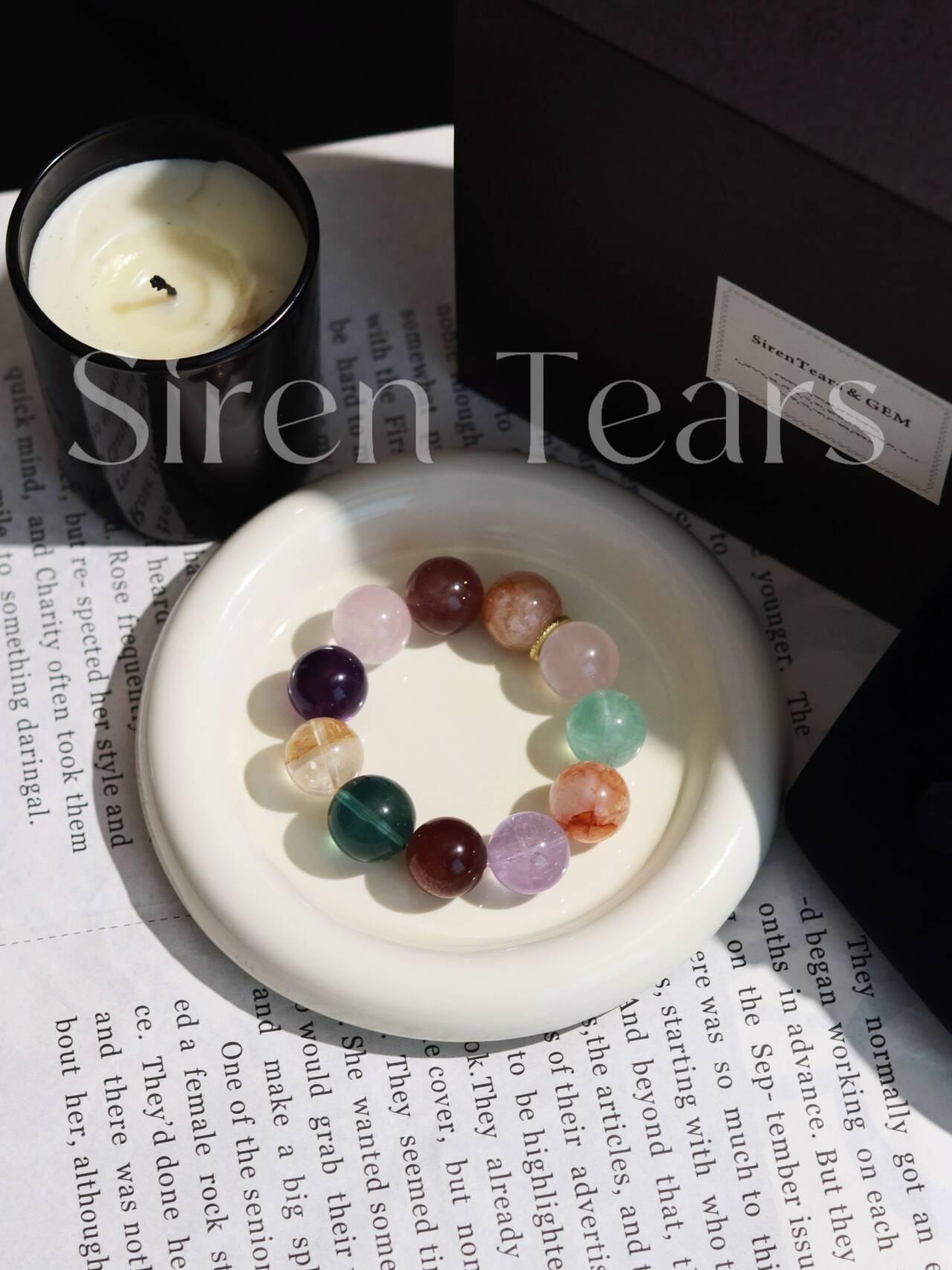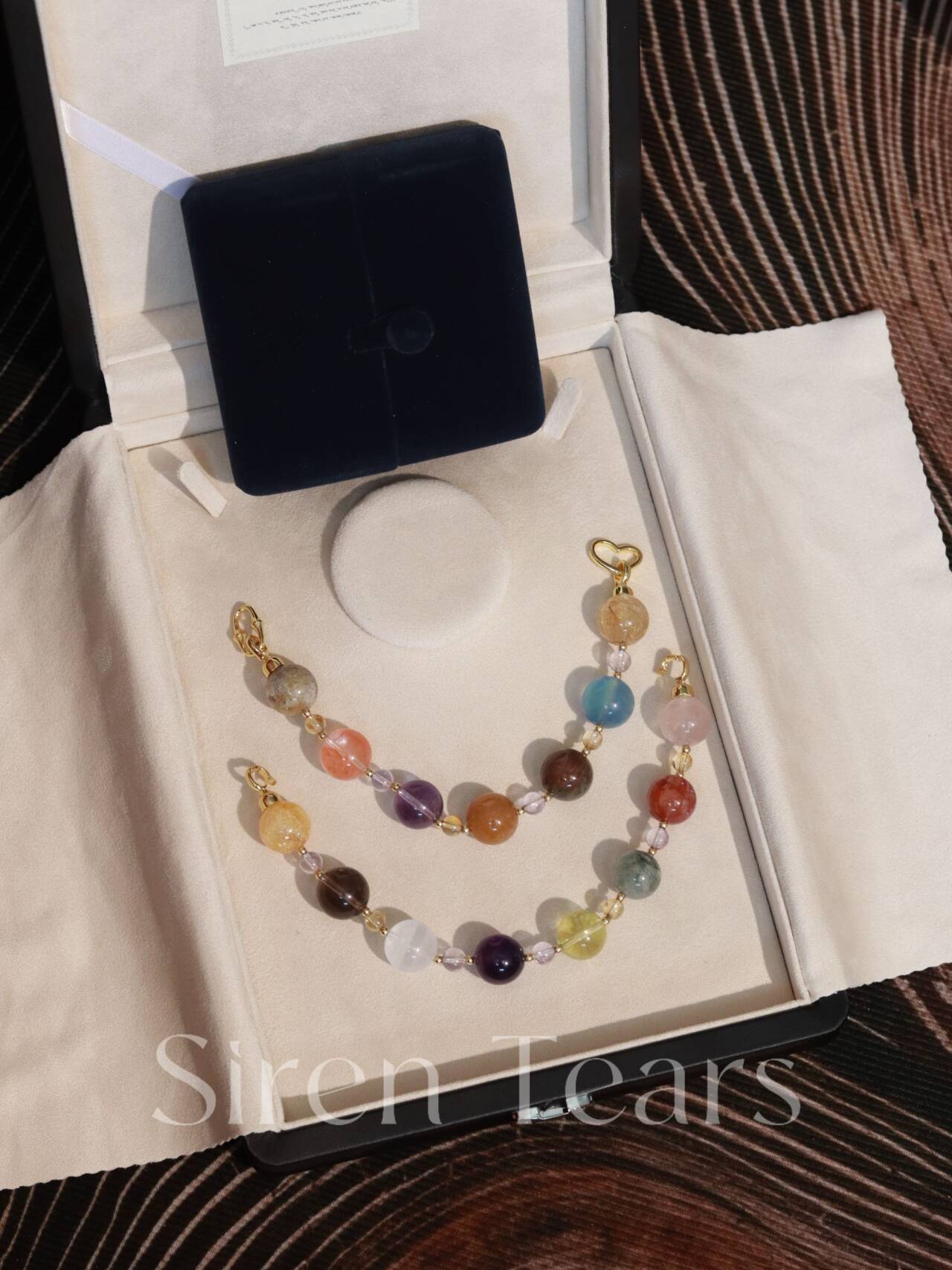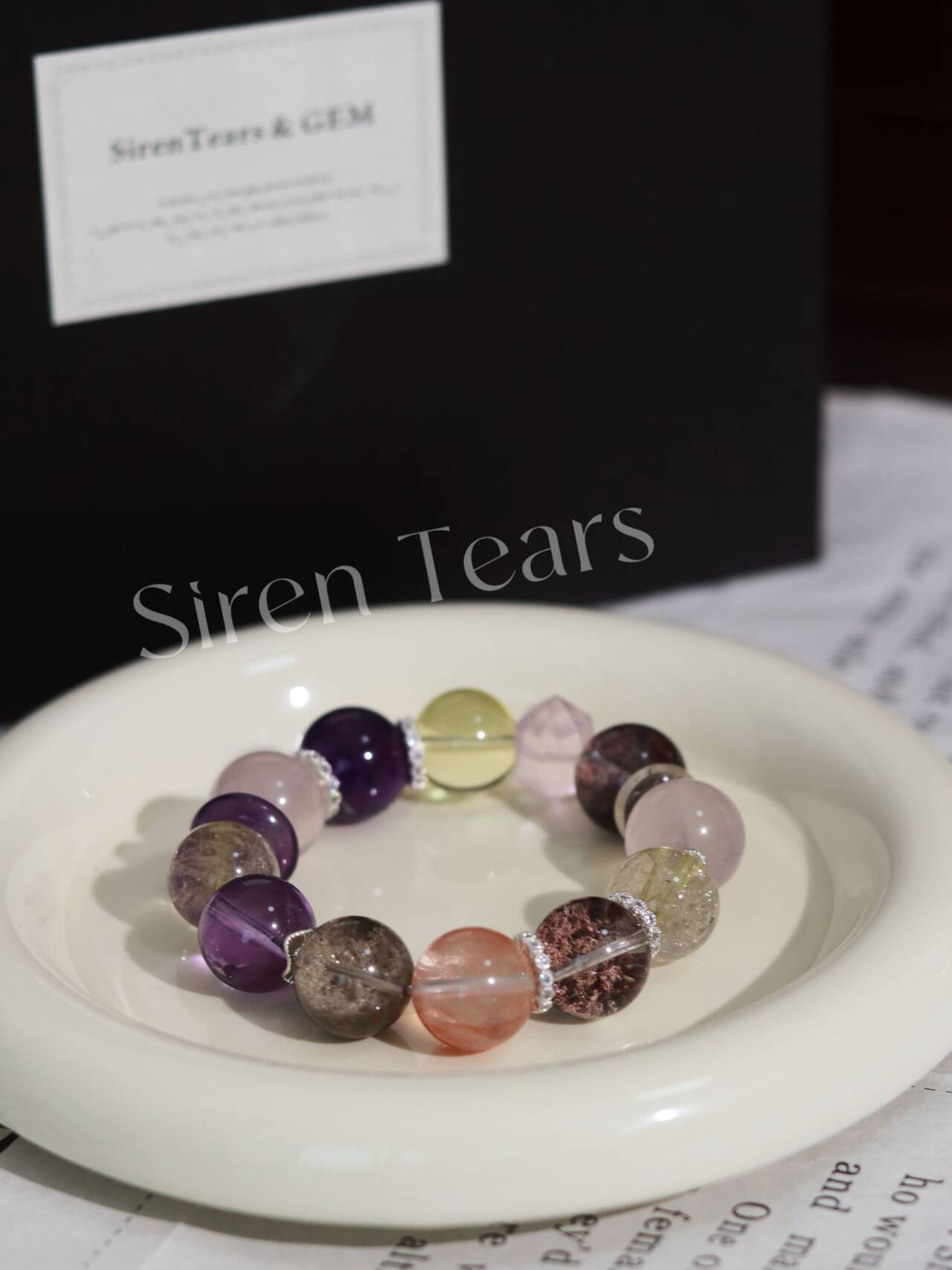 This bracelet skillfully brings together the depth of red phantom quartz, the softness of red rabbit hair crystal, the mystery of amethyst, the brightness of citrine, and the gentleness of rose quartz. Gemstones of various colors set each other off, as if painting a colorful natural picture on the wrist.