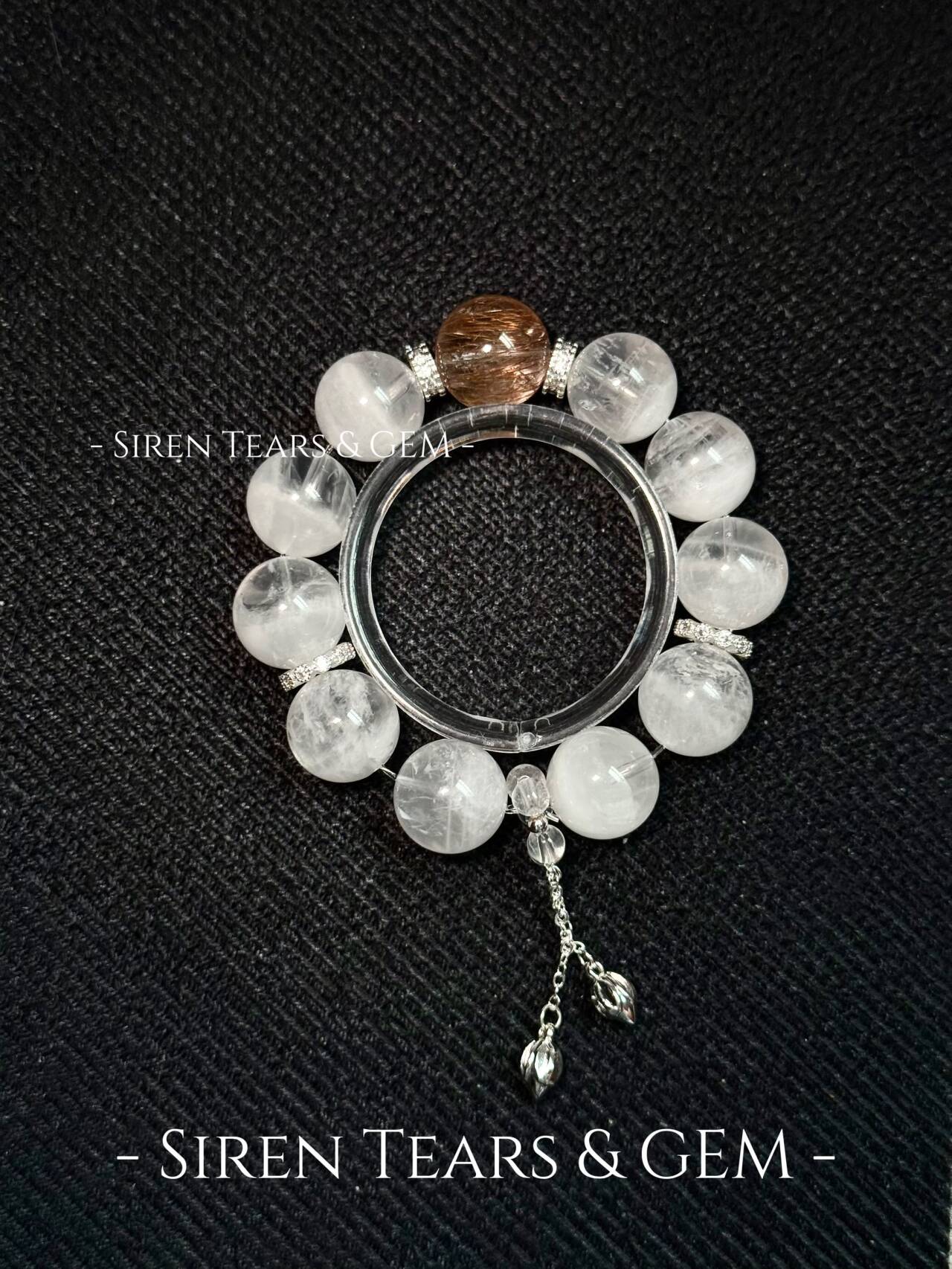 The White Phantom Quartz bracelet features pure white crystals like mist, brown rutilated quartz like stars, and flexible silver pendants. It's simple, elegant, and an exquisite ornament.