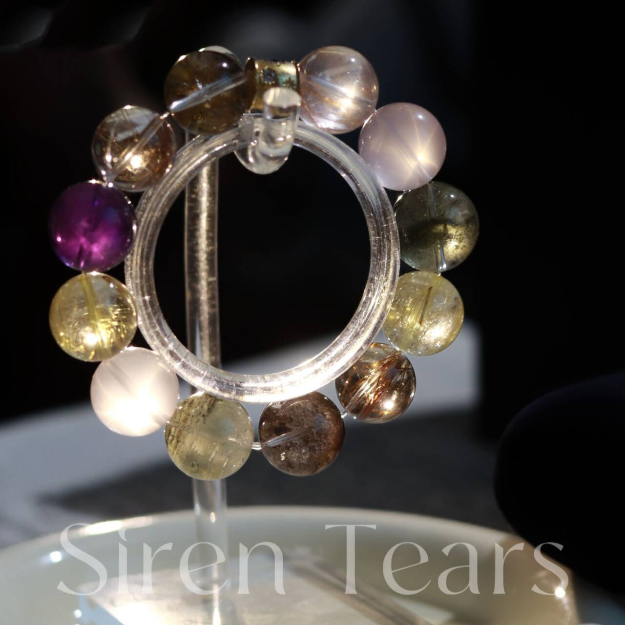 This bracelet combines the brilliance of rutilated quartz, the softness of rose quartz, the mystery of amethyst, and the uniqueness of black gold super seven. Colorful gemstones surround the transparent ring, setting each other off, as if staging a gorgeous gemstone event. The exquisite matching fully shows the ingenuity.