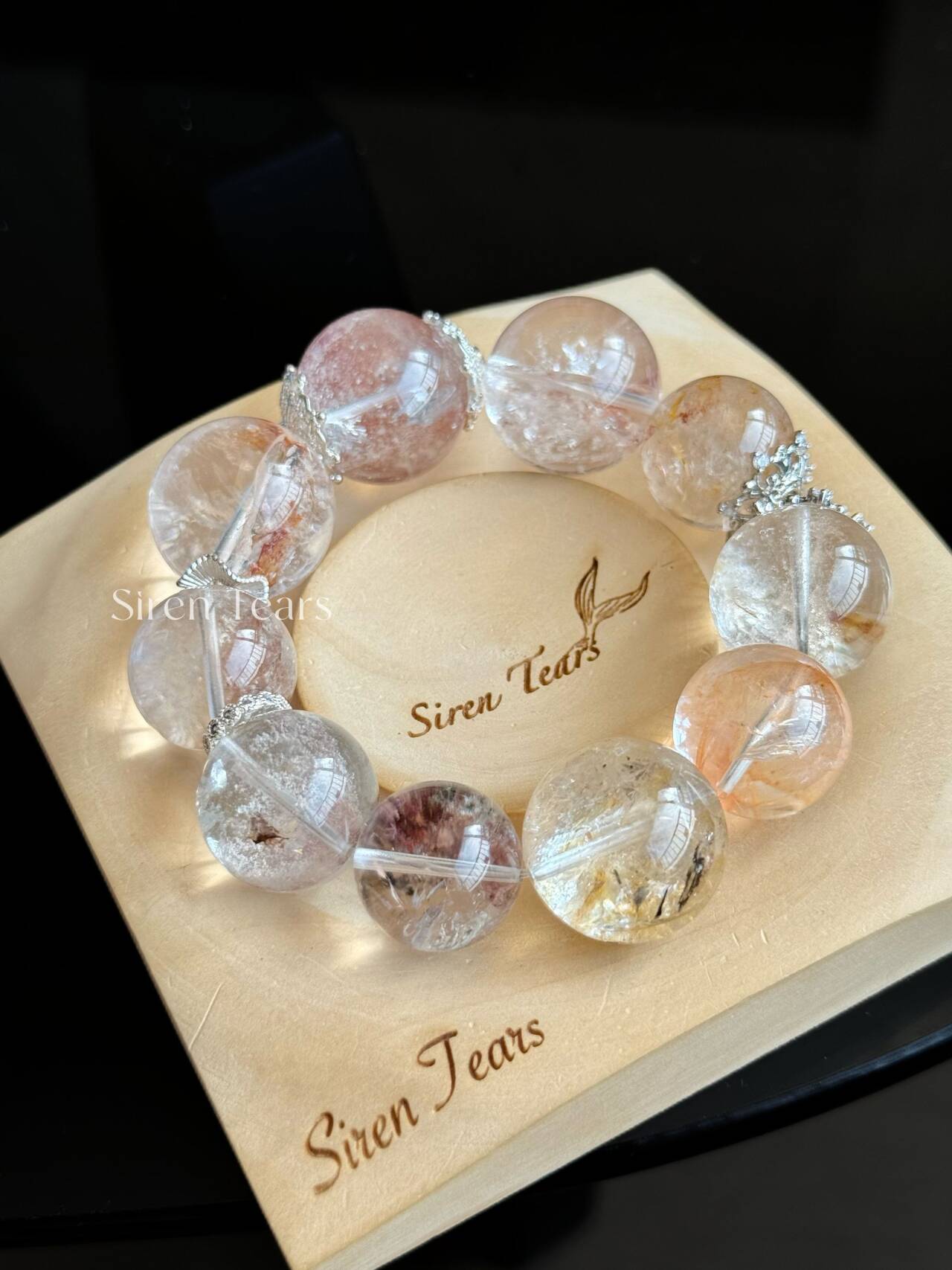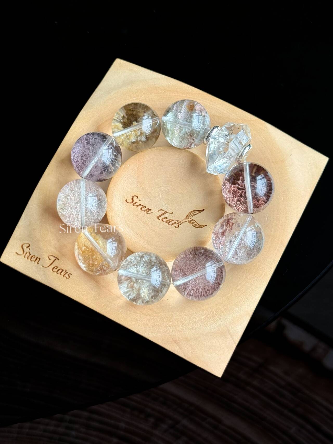 This Four Seasons Phantom Quartz bracelet seems to condense the beauty of the four seasons within. Each bead is rich in color, some as gorgeous as spring flowers, some as splendid as autumn leaves, while others exude the vitality of summer and the purity of winter. Each bead is like a work of art meticulously carved by nature. The transparent crystals contain different - colored phantom inclusions. Paired with unique crystal accessories, when worn on the wrist, it showcases vividness and elegance. It's a precious ornament that allows you to carry the beauty of nature with you.