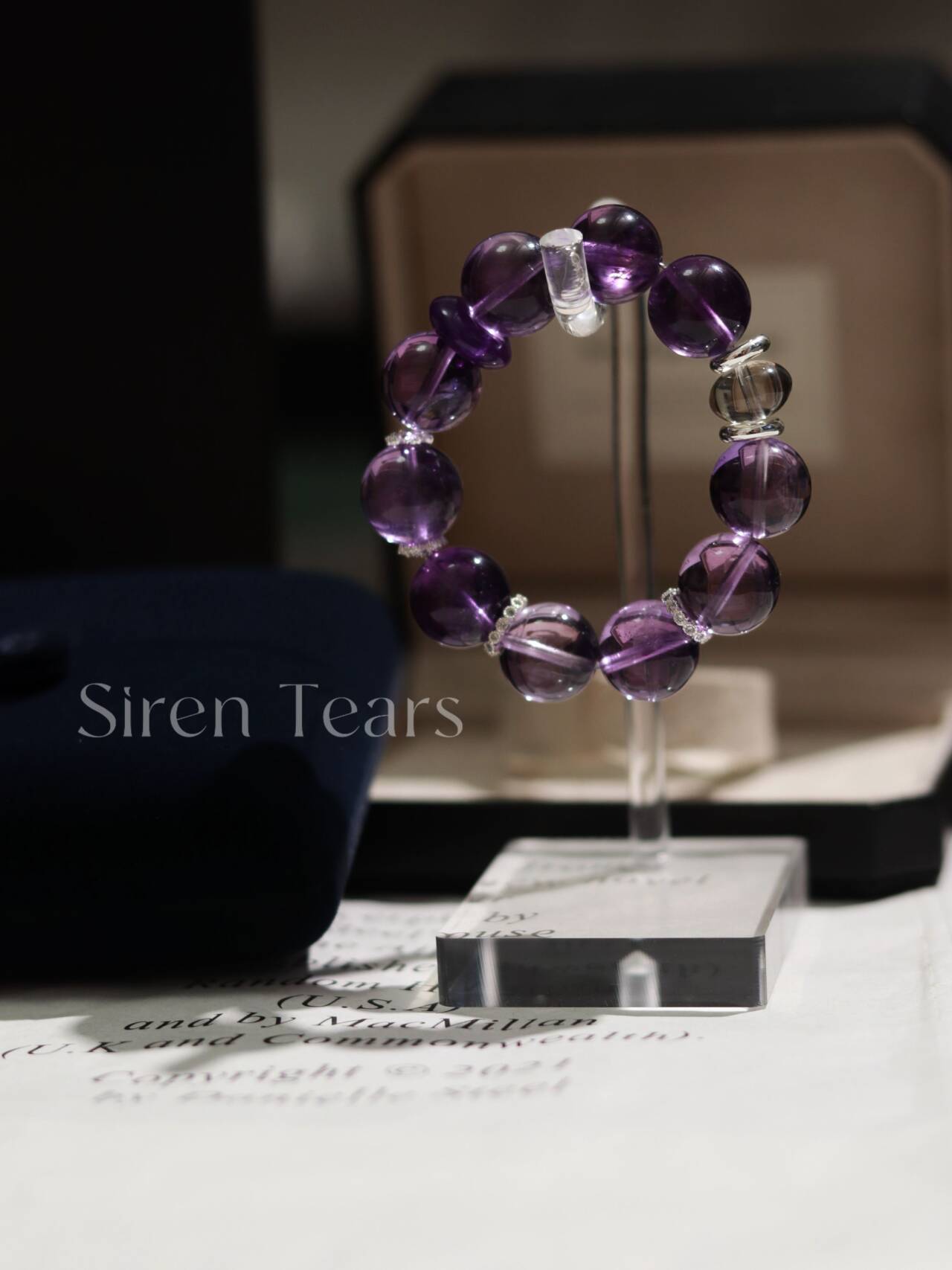 Each round and plump amethyst in this Uruguayan amethyst bracelet is like a frozen dreamy purple glow, exuding a deep and charming luster. The transparent ring design makes the crystals seem to float, ethereal and beautiful. With small diamonds as decorations, it is more luxurious and exquisite, showing elegant temperament and extraordinary taste.