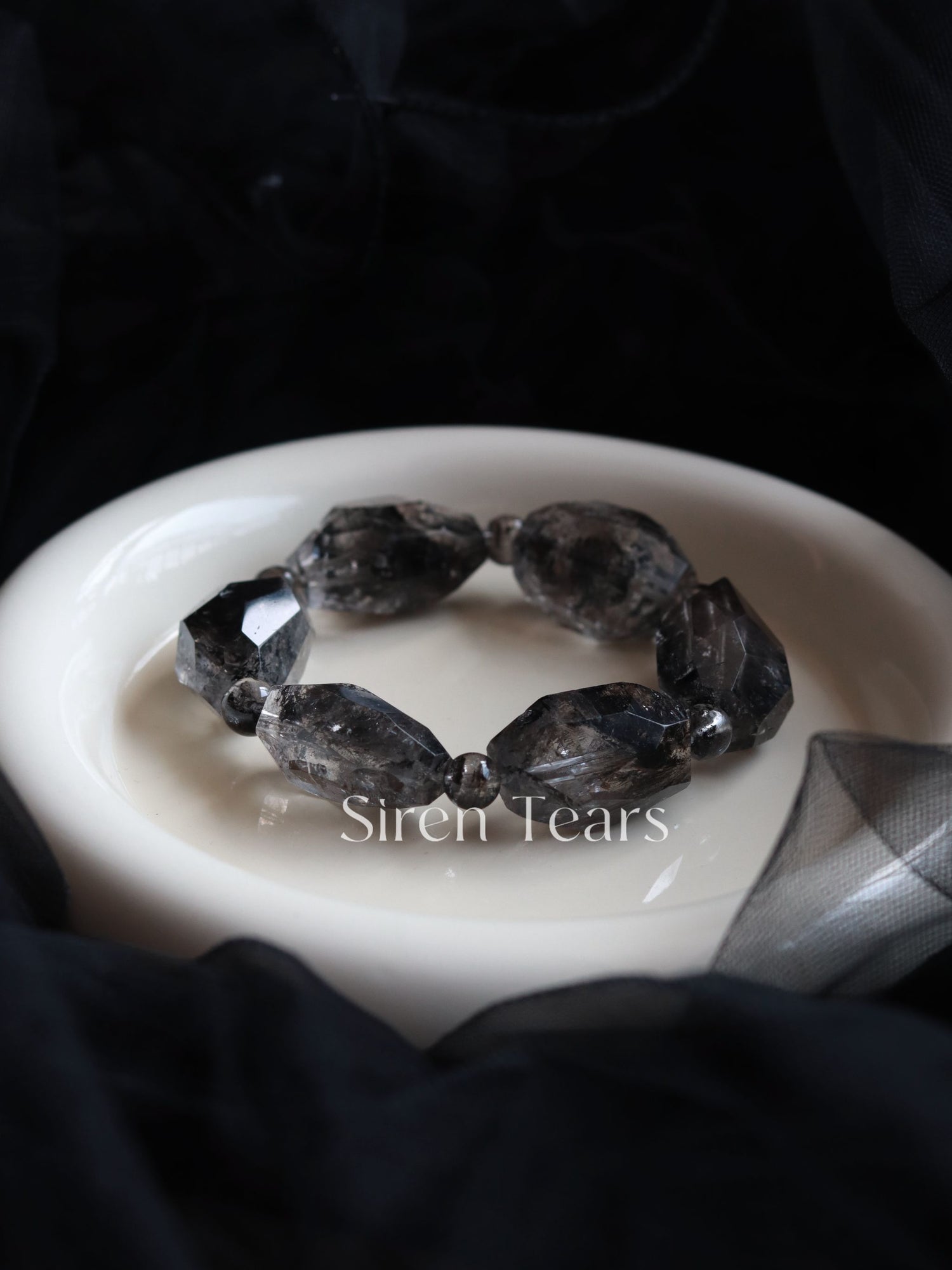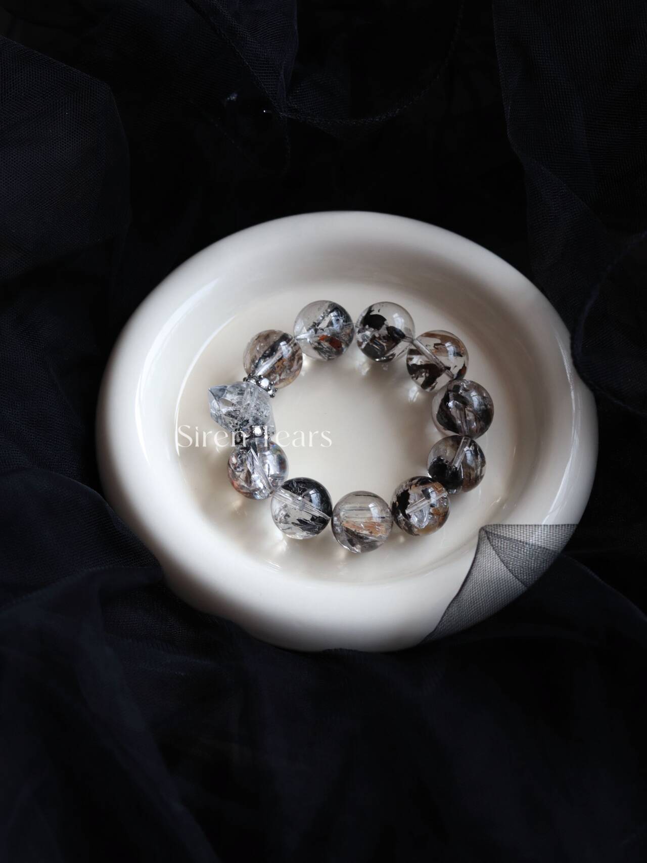 The black phantom quartz bracelet features interwoven black and transparent textures, as if hiding the mysteries of the universe. The beads, like crystals polished by time, show unique luster in light, adding mysterious charm to the wearer. It's an exquisite ornament combining nature and art.