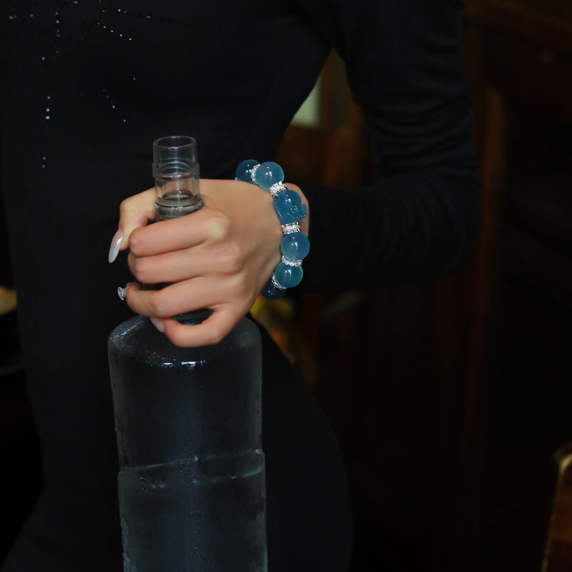 The crowning touch of the bracelet—the Pixiu - shaped centerpiece bead—is a perfect demonstration of the superb craftsmanship of the artisans. Its lifelike form seems to contain mysterious power. Paired with the delicately hand - polished metal accessories, it sets off the aquamarine, creating an atmosphere that is both luxurious and rich in cultural heritage. From the design concept to the completion of hand - making, every detail has been carefully considered, all to create this jewelry treasure that combines the beauty of nature, the fineness of craftsmanship, and the charm of culture. When you wear it, you're not just owning a beautiful accessory but also possessing a unique oriental auspiciousness and endless luxurious taste.