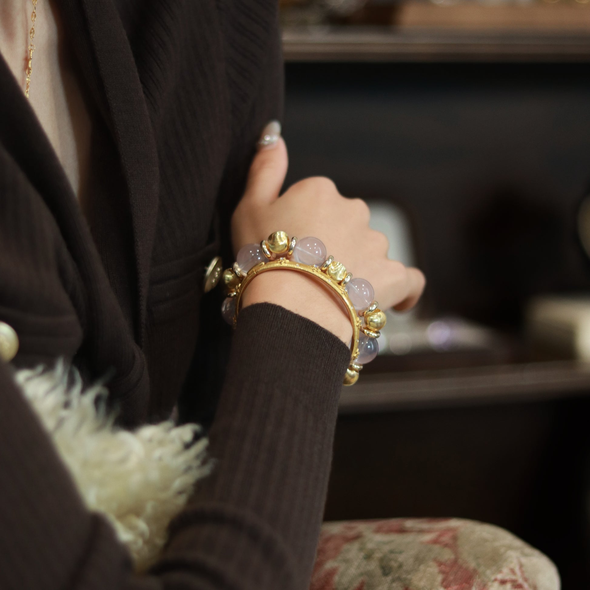 Encounter this exquisitely handmade luxury rose quartz bracelet and feel the timeless feminine elegance it carries. Each rose quartz bead is like a cherry blossom in full bloom in spring, exuding a soft and romantic pink luster, pure and charming. Rose quartz, also known as the "love stone", is said to attract beautiful love and convey tenderness and affection.